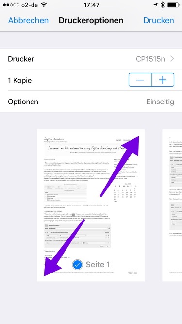 Mit dem iPad oder dem iPhone kann man mit jeder Anwendung (die drucken kann) ein PDF Dokument erzeugen. Diese Möglichkeit erschließt sich nicht direkt, daher hier eine kleine Beschreibung: