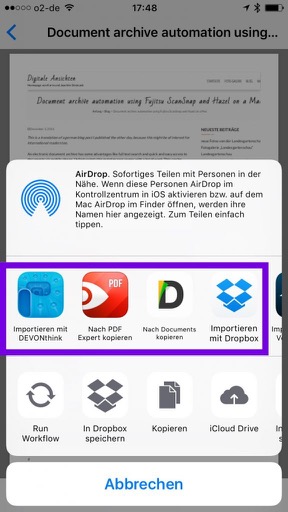 Jetzt wird das Dokument als PDF angezeigt und kann über ein weiteres Teilen-Menü weitergeschickt werden: