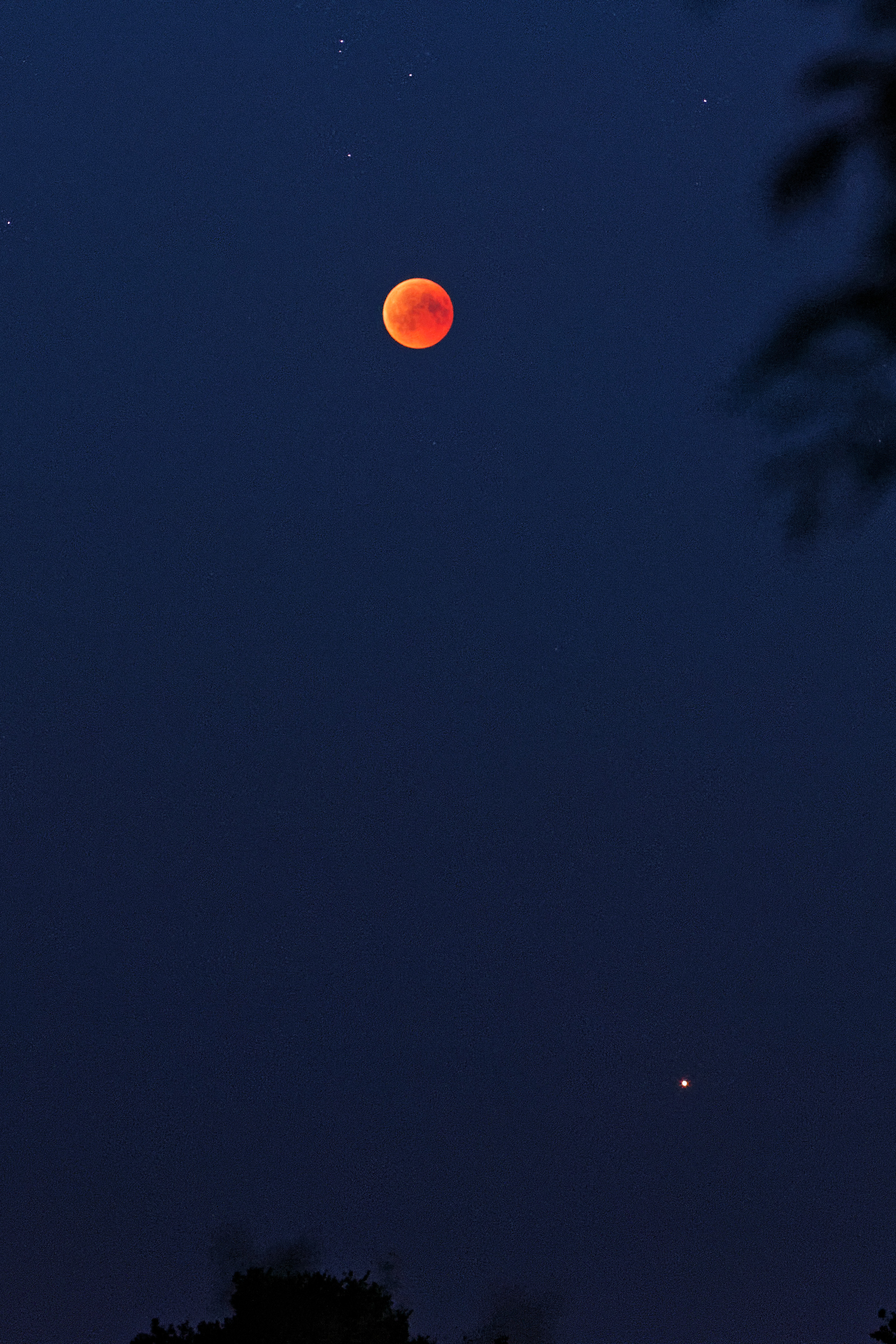 Bei perfektem Sommerwetter hatten wir in Bad Lippspringe eine wunderschöne Sicht auf die Mondfinsternis, welche die Mondscheibe in tief-rotes Licht tauchte. Der ebenfalls rötliche Mars etwas weiter unten rechts war der perfekte Begleiter für diesen Abend.